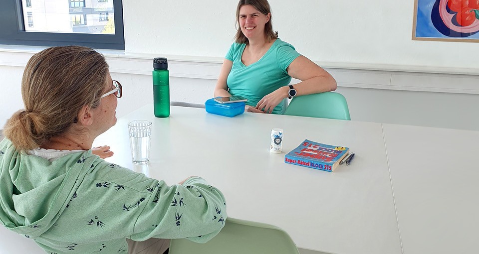 Meine liebe Kollegin Katja und ich sitzen nichtsahnend in der Mittagspause zusammen, als ein Kollege rein kommt und uns fragt: „Habt ihr eure Outfits eigentlich extra auf die Stühle abgestimmt?“